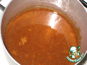 Сахар полностью расплавить, запах будет стоять супер-карамельный. У меня заняло это где-то 12-15 минут