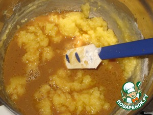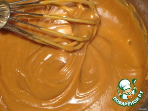 Затем в несколько приемом в масляную смесь ввести кофейно-карамельную, каждый раз размешивая до однородности.