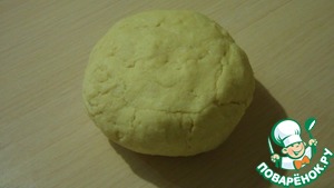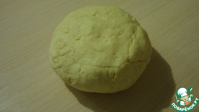Подмороженное масло натрём на тёрку к муке, перетрём дополнительно руками в крошку. Добавим к муке с маслом желтки, смешанные со сметаной. И быстро соберём тесто в шар. Завернём в пищевую плёнку, отправим в холодильник на час.