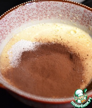 Добавить муку и какао. Аккуратно перемешать миксером до однородности.