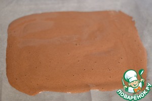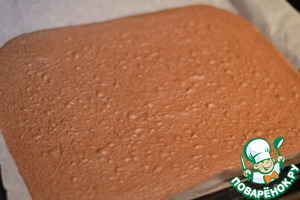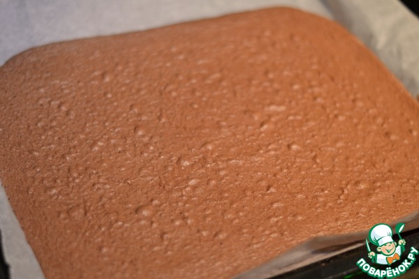 Бисквит получается очень нежный, поэтому снимать его лучше так: перевернуть бумагой вверх и аккуратно снимать. -