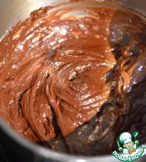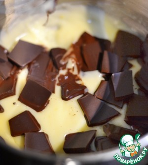 Отжать желатин, поместить в горячую шоколадную смесь, перемешать, чтобы желатин растворился. Поместить в холодильник до остывания.