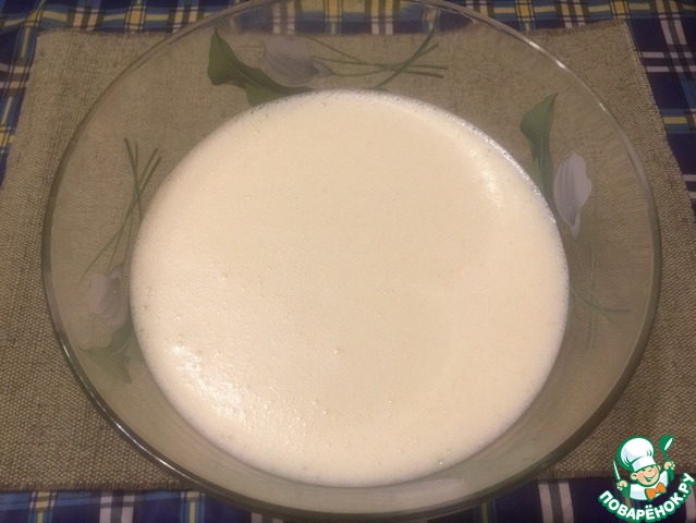 • Всыпаем муку и замешиваем жидкое тесто.