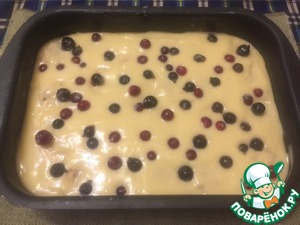 • Заливаем третьим слоем теста, выкладываем ягоды и слегка их утапливаем в тесте.
