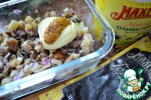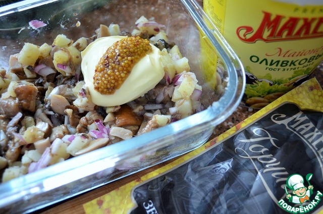 Добавить майонез и горчицу, перемешать.