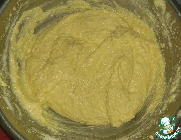 Размягченное сливочное масло растереть с сахаром и ванилином. Добавить яйца, взбить. Добавить сметану и цедру лимона или апельсина, хорошо взбить.