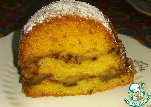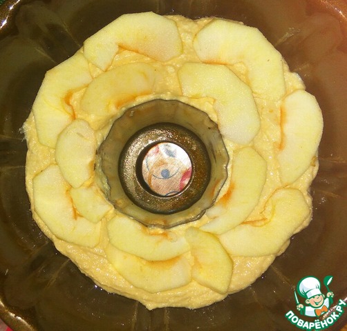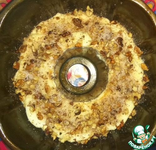 Рецепт «Сметанный кекс с орехами и яблоками»: