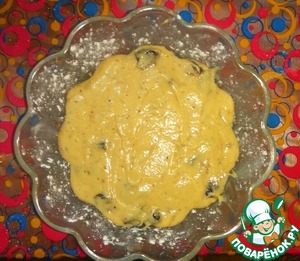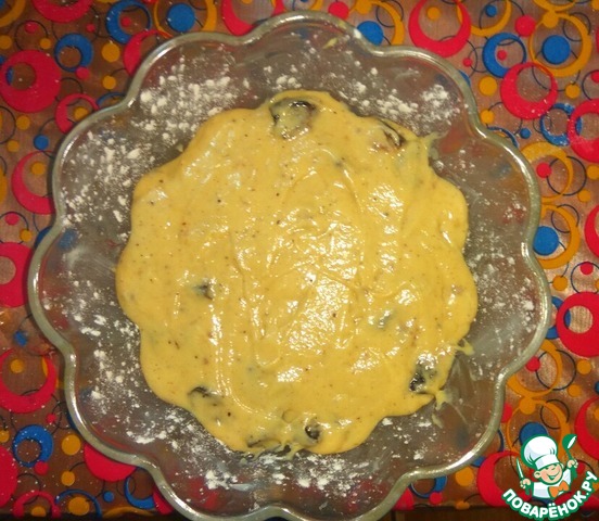 Форму смазать маслом, присыпать мукой. Выложить в форму тесто.