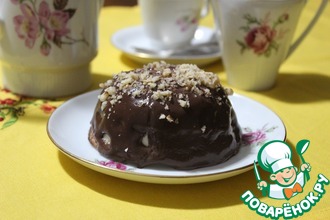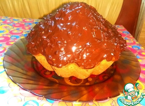 Растопить на водяной бане шоколад со сливочным маслом. У меня был шоколад с орехом. Покрыть глазурью наш пряник-кекс. Поставить в холодильник для застывания глазури. И можно угощаться.