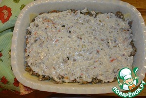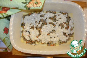 Сверху накрыть порцией подготовленных листов лазаньи.