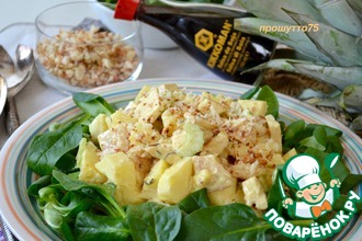 Куриную отварить или обжарить до готовности с прованскими травами. Нарезать на кубики.