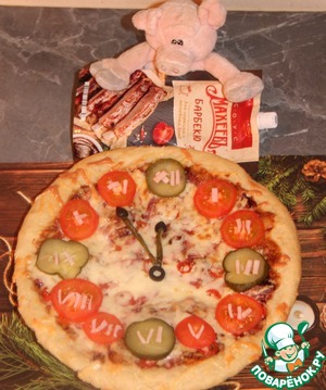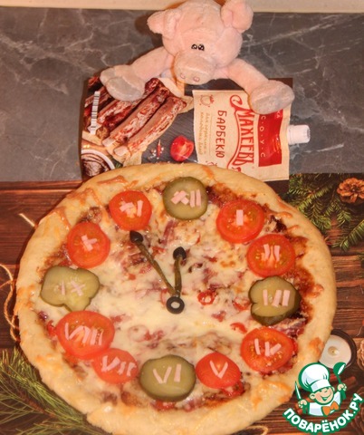 Любите ли Вы пиццу так, как любит ее мой сын! )) Для него пицца, вполне праздничное блюдо. Поэтому, у меня на праздничном столе, кроме нарядных салатов и аппетитного горячего обязательно красуется пицца. Ничего не поделаешь, все для родных и любимых. ))) Если среди Ваших родных есть такие же заядлые пиццелюбы, то рецепт для Вас. Будем готовить не просто пиццу, а новогоднюю. В форме часиков. Плюс, поделюсь парочкой секретиков. )) Может, пригодятся.