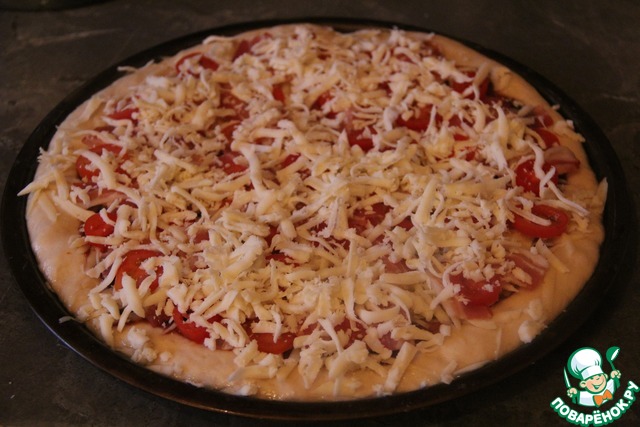 Делюсь еще одним секретиком! ))) Сыра всегда делаю два слоя. Причем первый кладу ПОД начинку. Причем, первый слой, который под начинку, обильный. А верхний, который поверх начинки, уже слегка. Так пицца получается очень сырной, а сама начинка остается видна. Не спрятана под горой сыра