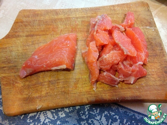 - Лосось (солёный или холодного копчения) — 250 г