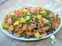 Также заранее нужно отварить или запечь картофель. Когда все продукты будут подготовлены, можно приступить к сборке самого салата. |