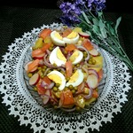 Аппетитный и яркий вид салата всегда притягивает внимание за столом. Этот салат одним из первых исчезает с тарелок! Заправка из горчицы ТМ "Haas" очень хорошо подчеркивает вкус всех компонентов и является прекрасной альтернативой майонезу.