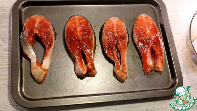 Заливаем стейки соусом и оставляем на 10-15 минут.