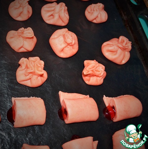 Тесто раскатать тонко, вырезать кружок 7 - 8 см..