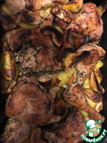 Рецепт «Запечённые окорочка с картофелем и яблоками»: