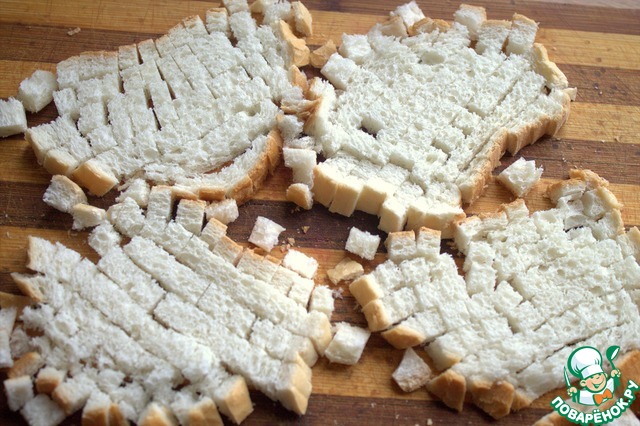 Начнём с сухариков. Лучше брать вчерашний батон или другой хлеб.