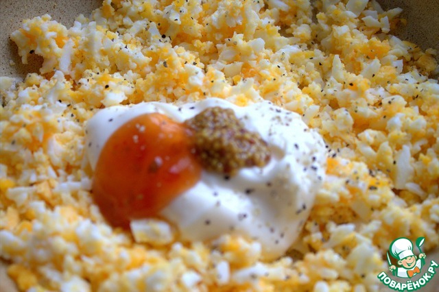 Яйца отварить 4 минуты после закипания, чтобы не переварить.