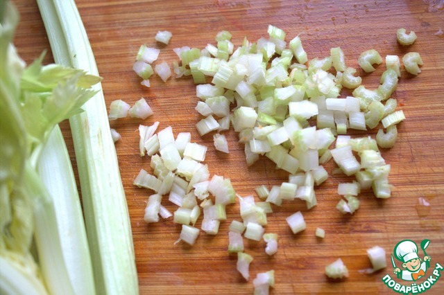 Нарезать стебель сельдерея.