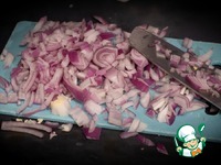 - Лук репчатый (здесь я кладу салатный красный лук для цвета. Если цвет не принципиален. а жаба вдруг проснулась - берите самый дешёвый и злобный репчатый лук. Здесь он ничем не хуже, потому что после жарки его злоба утихнет. По две луковицы (130г каждая) на полкило сухой фучжу.) — 2 шт
