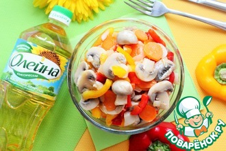 Грибы достать из маринада, дать стечь жидкости и добавить в салатник.