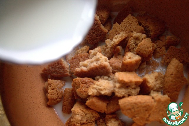 Смочить тёплым молоком или сливками. Количество зависит от сорта печенья и его впитываемости.