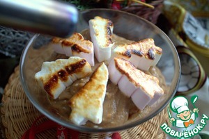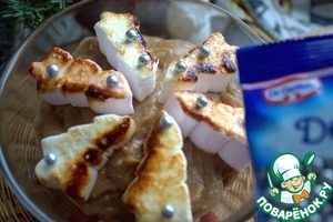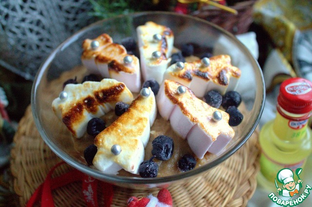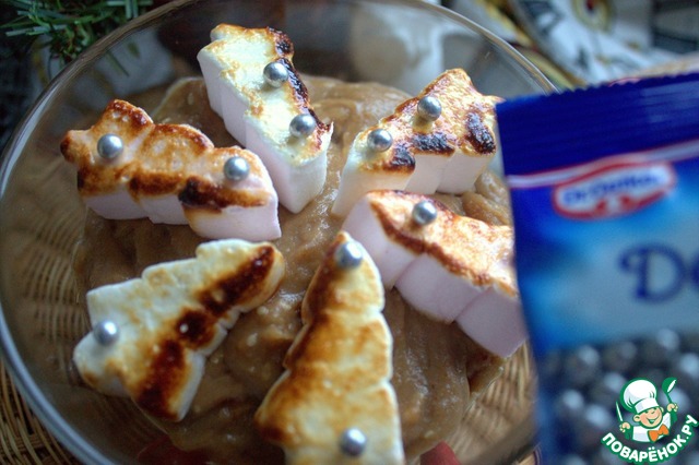 Украсить маршмеллоу и обжечь горелкой.