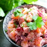 Описание: Хочу предложить домашний, быстрый и очень вкусный салат из сельди со свеклой и картошкой. Нежная заправка из сливочного сыра, сметаны и майонеза.