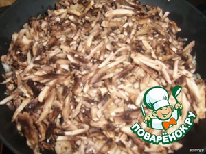 Лук мелко нашинковать. Грибы нарезать соломкой.