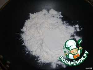 Муку подсушить на сухой сковороде. Не обжаривать.