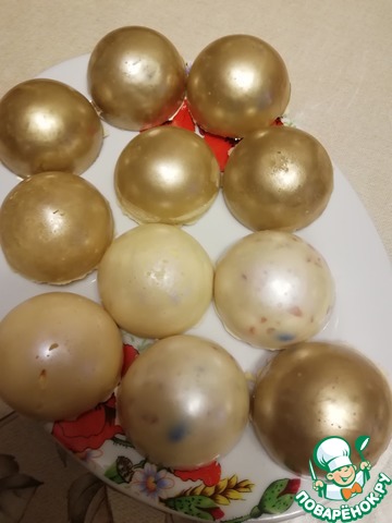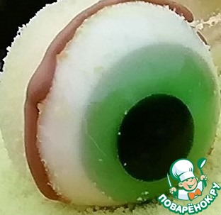 У тех сфер, что соединились, может быть трещина на стыке, не страшно - для глаз по трещине можно пройтись растопленным шоколадом, будет веко. Для шаров- можно еще раз в форму налить немного желе и положить в нее шар, лишнее желе вытечет, потом его легко отделить.