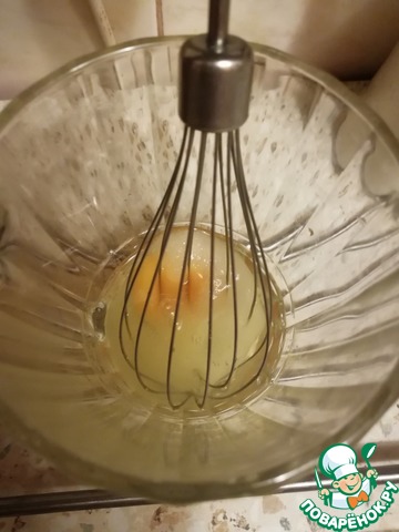 Потом вмешиваю муку. Так как это бисквит, то муку вмешиваю медленно, поворачивая миску (ну в общем как и для всех бисквитов. Для тех, кто не знает как это делать, это сложно описать, нужно посмотреть видео, их много в инете). Если есть проблемы с бисквитами лучше положить 1/2 ч. л. разрыхлителя.