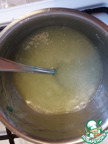 Хоть на моей пачке агар-агара и написано, что нужно вливать жидкости комнатной температуры, у меня агар сразу сворачивается, поэтому я продолжаю нагревать смесь до полного смешивания -