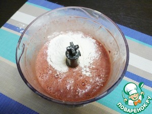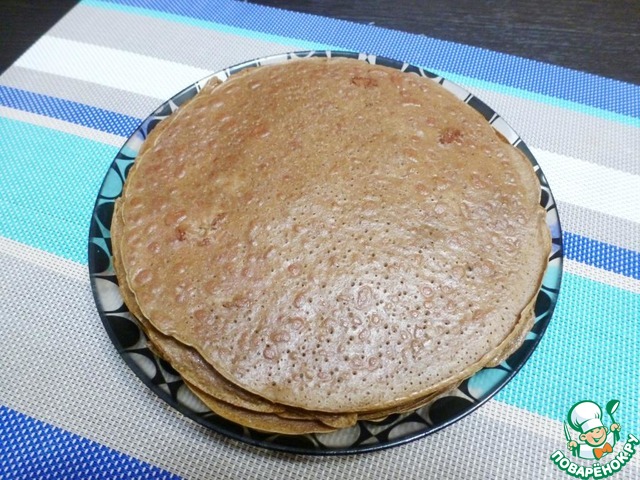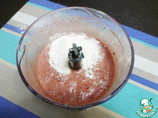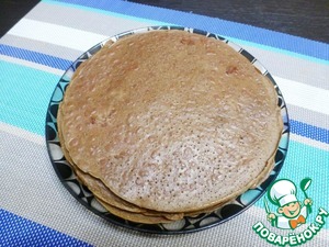 Добавить муку и приготовить тесто для блинчиков. Муку всю сразу не добавляйте, может понадобиться меньше. Тесто должно быть немного гуще как на обычные тонкие блинчики.