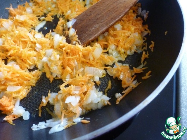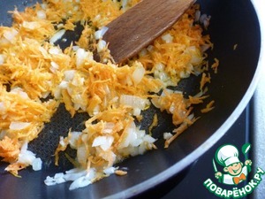 Обжарить лук с морковью до мягкости и легкого золотистого цвета.