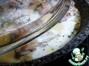 Сметану развести водой до состояния густого кефира, посолить и поперчить.