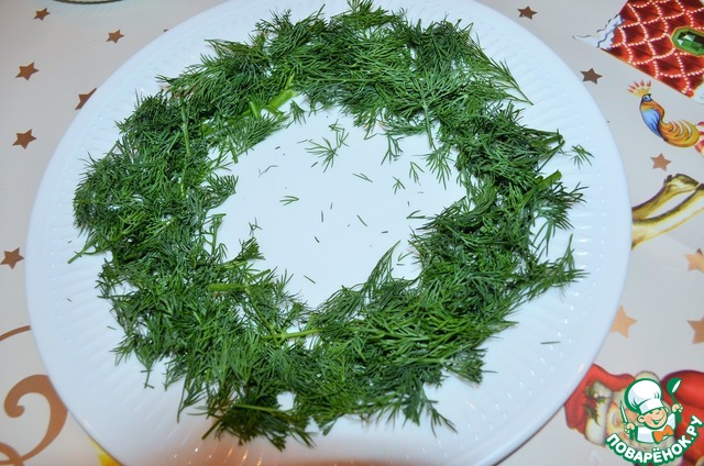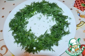 Укроп нарубить и выложить на блюдо по кругу.
