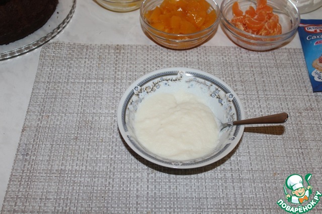 Выкладываем желе в тортик. Убираем в холодильник на 1 час.