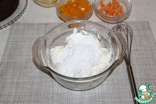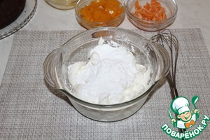 В сметану добавляем сахарную пудру и хорошо перемешиваем.