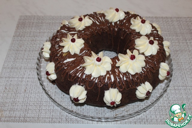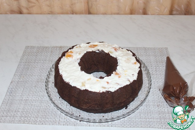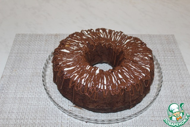 Украшаем тортик растопленным шоколадом (у меня шоколадная паста нутелла). Убираем в холодильник на 30 минут.