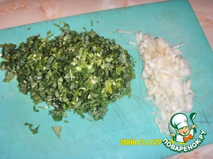 Нарезаем зелень и шинкуем лук