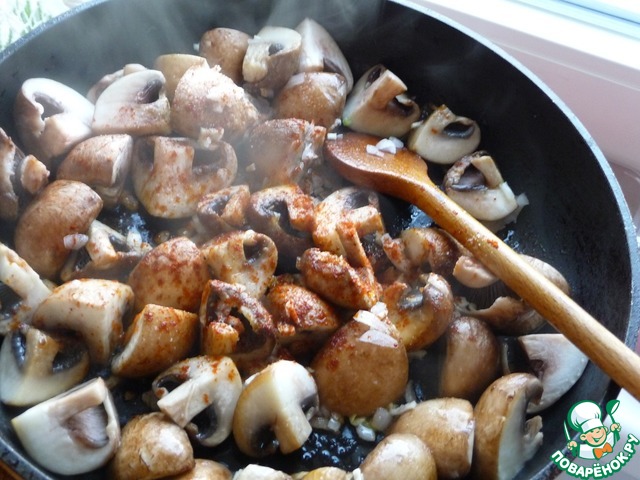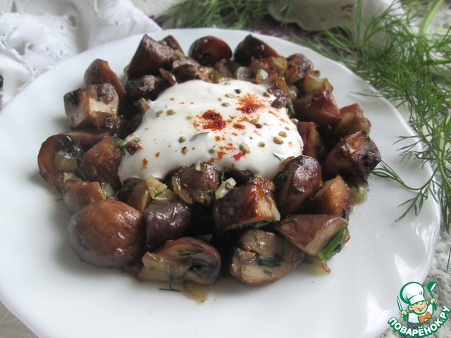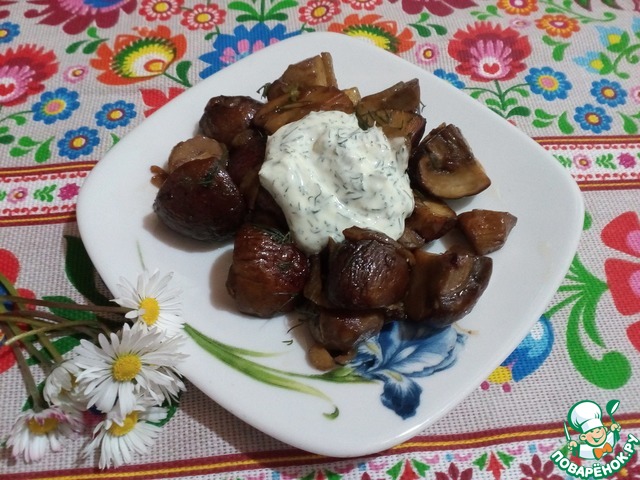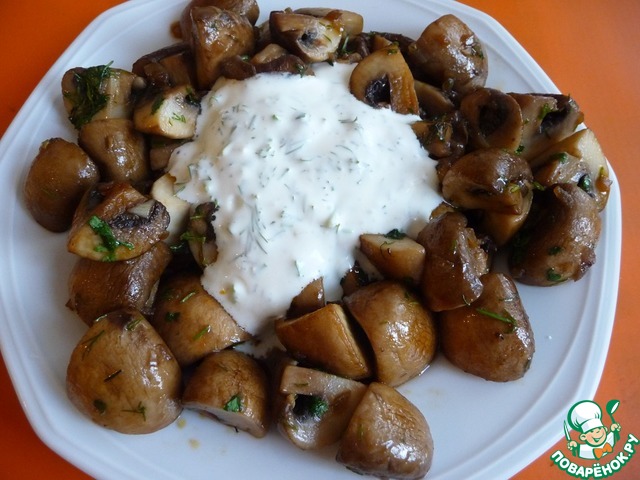 Рецепт «Жареные шампиньоны с чесночным соусом»: