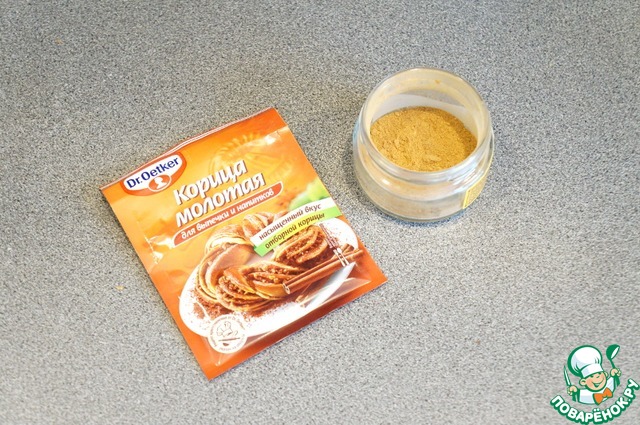 Если есть готовая пряничная смесь, используйте её. Я готовлю такую смесь сама. В баночке смешиваю молотые мускатный орех (1 ч. л.), имбирь сухой (1 ч. л.), перец белый 0,3 ч. л., гвоздика 0,3 ч. л. И большую часть составляет корица 1,5 ч. л.