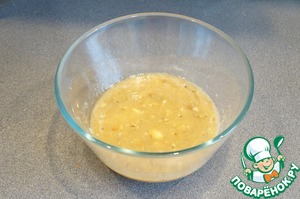 Добавить к бананам сахар, сок ( у меня яблочно-виноградный), масло, соль, всыпать чайную ложку пряничной смеси.