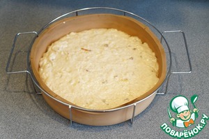 Выложить полученное тесто на карамель с бананами. Отправить в разогретую духовку.