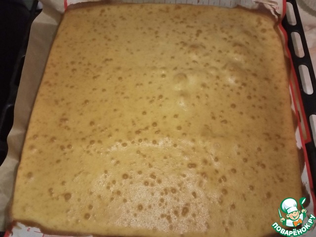 Противень застелить пергаментной бумагой, выложить тесто толщиной о,5 см. Выпекать при температуре 180 градусов 15 мин.