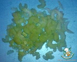 Режем стебли сельдерея тонкими колечками. Добавляем к капусте.